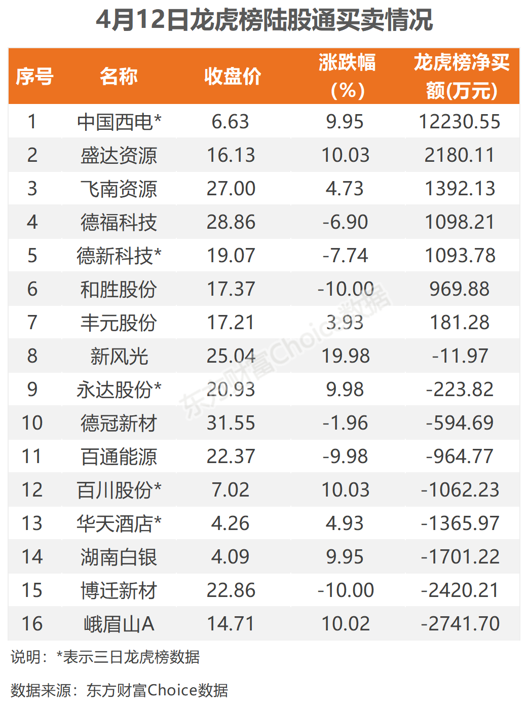 4月12日,陆股通参与龙虎榜中个股共涉及16股,其中7股被陆股通净买入,中国西电被买入最多,净买入1.22亿元;另外9股被陆股通净卖出,峨眉山A被卖出最多,净卖出2741.70万元。