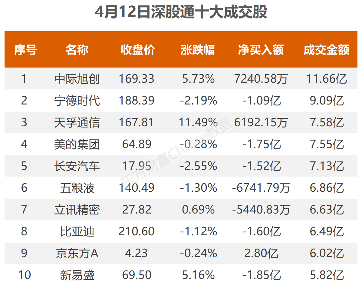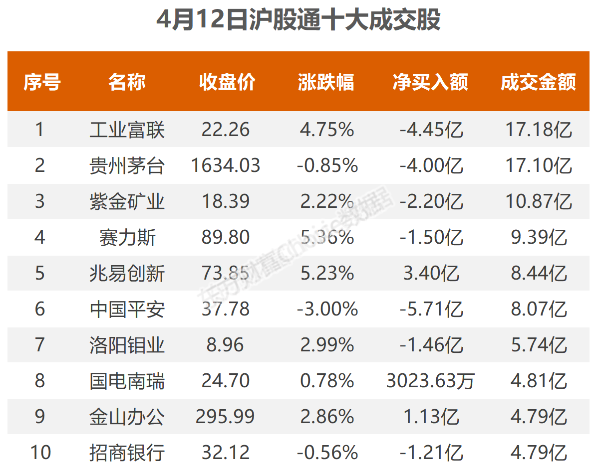惠管钱 4月12日北向资金最新动向(附十大成交股)