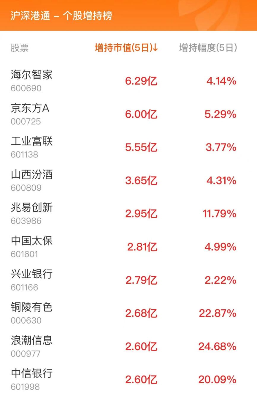 北向资金个股增持榜
