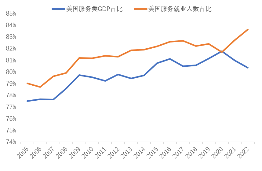 美国作为全球第一大经济体,服务业贡献了GDP的80%,美国总就业人口中的84%从事服务业,其从业人员的薪酬大约是我国的5倍左右,如果我们的服务业的薪资价格与美国的差距缩小一倍,占GDP的比重提高到65%,估计我国的GDP总量就可以赶上美国了。