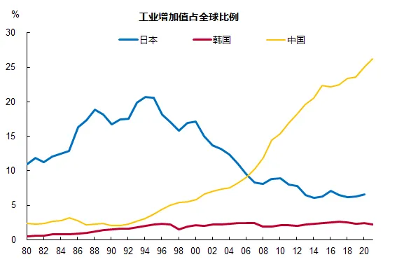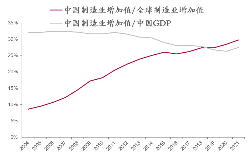 不少人担心我国制造业占GDP的比重下降会影响到制造强国目标的实现,但中国制造业占全球的比重却从20年的8.6%上升到如今的30%,占比之高可谓笑傲江湖。但仍以中低端为主。不过,制造业的就业人口则不断下降,毕竟自动化程度提高了。过去是机器替代人力,现在是机器替代脑力。