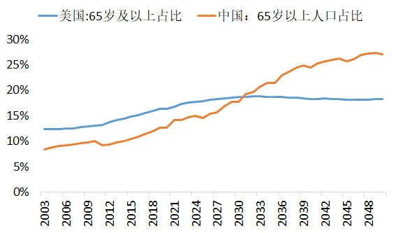 美国的老龄化率到2031年以后就走平了,不再有上升了,但中国老龄化率依然在加速,到2070年,中国的老龄化率水平将超过日本,我们比日本更老;另外,中国的预期寿命现在已经超过了美国,抚养比例上升加速,以后一个老年人居多的中国跟一个年轻人居多的美国来竞争,从这个角度来看,科技发展是关键。