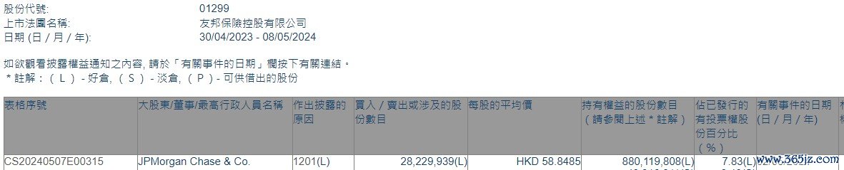 宝尚配资开户 小摩减持友邦保险(01299)约2823万股 每股作价约58.85港元